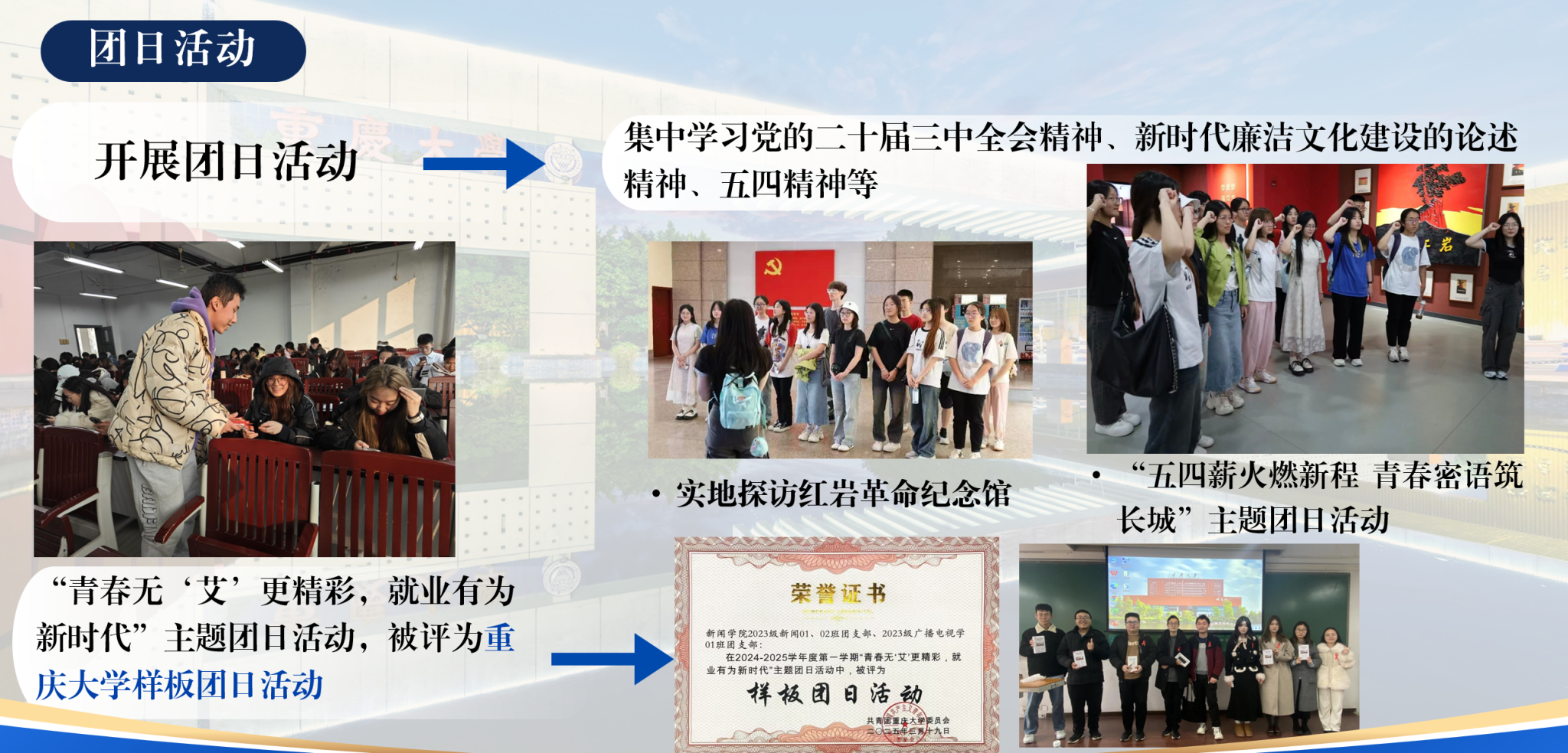 样板团日活动”两项校级荣誉,体现了党团组织的先进性与凝聚力。
